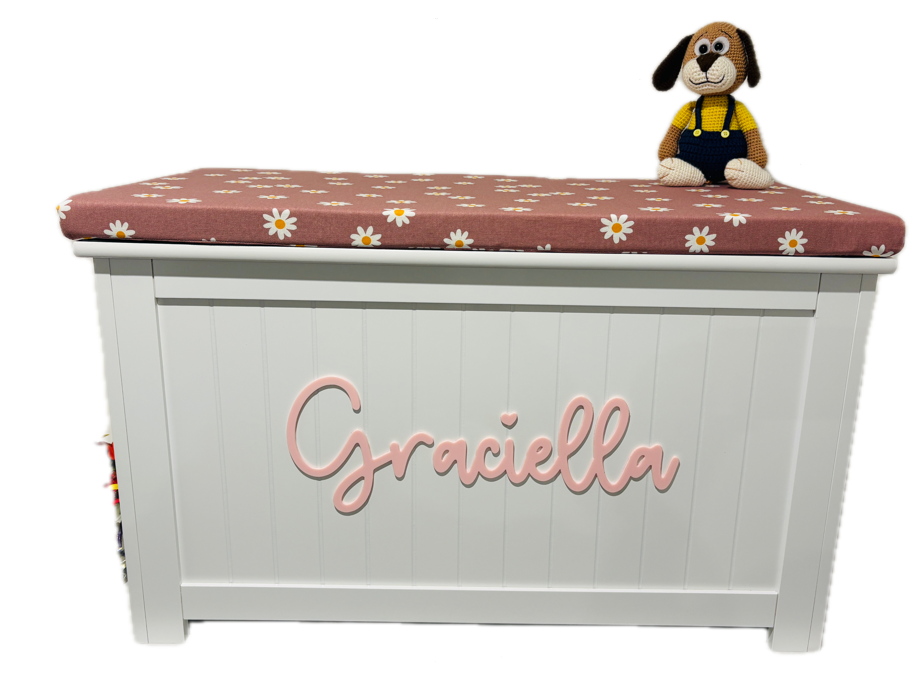 Have a look through some of the unique and special personalised toy boxes we have already created for inspiration! Each toy box is individually crafted to the unique little one they are made for.